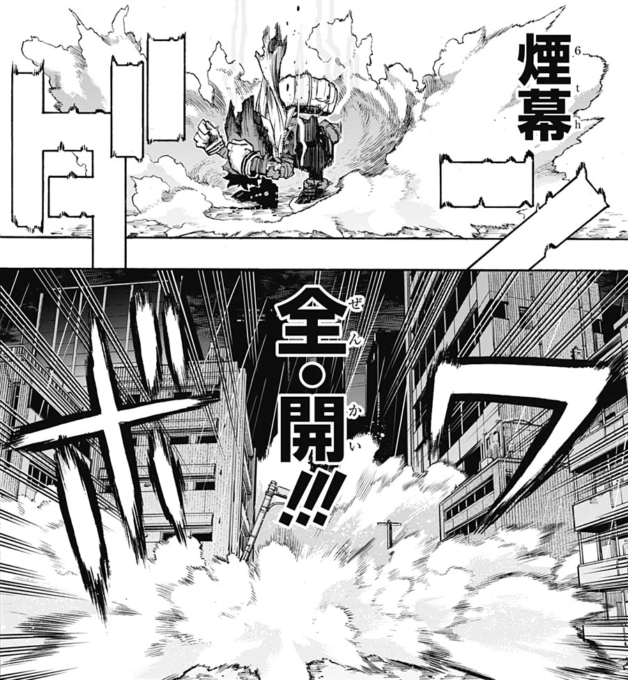 Durante su lucha contra Lady Nagant, Izuku utiliza Cortina de humo para obstaculizar su visión, para que pueda saltar de un edificio a otro acumulando energía cinética antes de saltar de un rascacielos y capturarla con el Don Fa Jin.[2]
