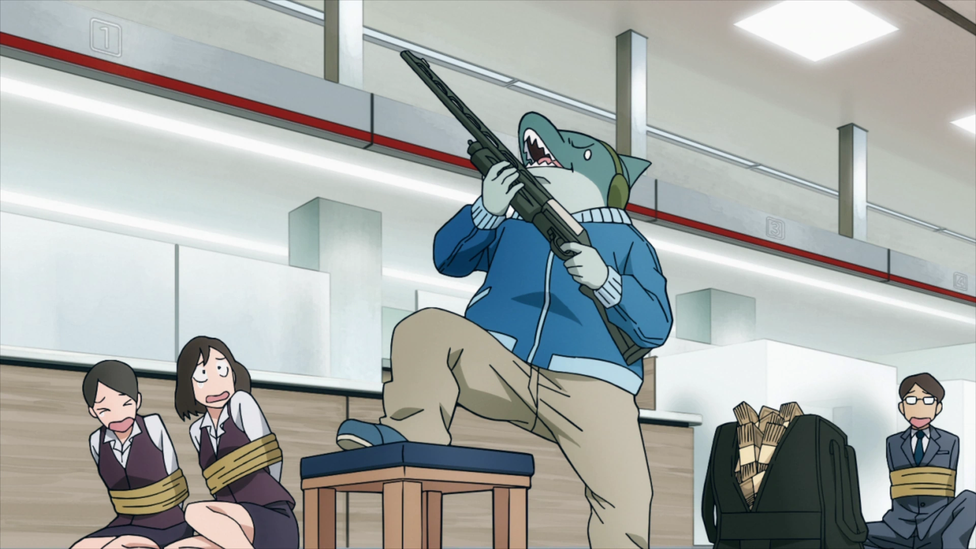 Escopeta: El villano delfín utiliza una escopeta de acción por bombeo durante su intento de robo.