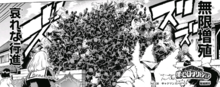 Le Docteur Ujiko regarde de son laboratoire, amusé par le plan de Tomura qui se retourne. Malgré cela, il sait que ce n’est pas ce que All For One voudrait. Il dit à Gigantomachia que le successeur est plus difficile sans sommeil et joue un enregistrement de la voix de All For One, réveillant la bête. Gigantomachia sent son environnement et s’en va chercher son successeur.