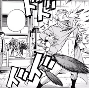 Après s'être plaint de sa compagnie pendant trois ans, Teruo décide de se venger. Il se déshabille et devient plus puissant grâce à son alter, mais il se fait rapidement battre par Hawks.