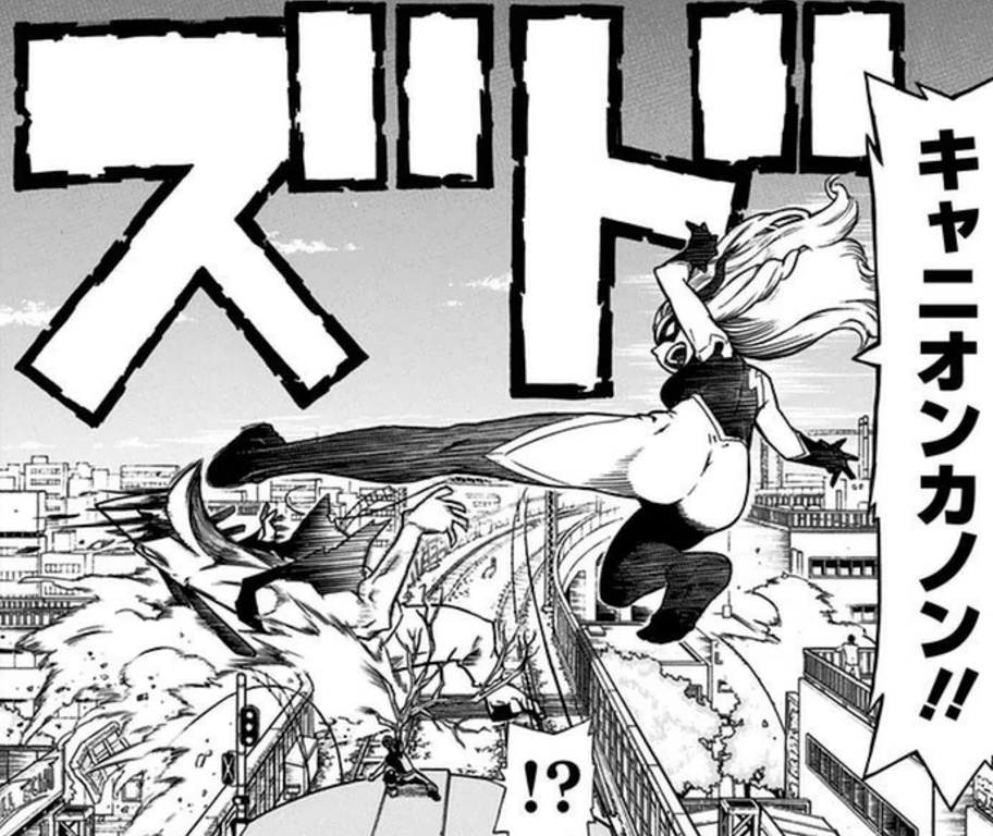 No entanto, Mt. Lady aparece, usando Canyon Cannon no inimigo para derrotá-lo. Várias pessoas começam a fotografar a heroína enquanto ela declara que hoje é sua estréia e pede que o resto seja deixado para ela. Izuku começa rapidamente a tomar notas, e um homem se pergunta se ele está querendo ser um herói, desejando-lhe boa sorte, para o qual Izuku felizmente responde que ele fará o seu melhor. Na escola secundária de Izuku, uma professora repreende a turma, dizendo-lhes que é hora de pensar no seu futuro. Ele diz que vai distribuir as impressões no curso de vida desejado dos alunos, mas sabe que todos querem ser heróis. Quando a turma começa a usar as Individualidades, ele lembra que eles não podem usá-los durante o horário escolar.