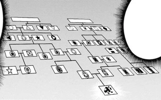 Um exemplo da linha hereditária entre duas famílias. O destaque é de uma mutação rara, sendo completamente diferente das outras Individualidades da família.