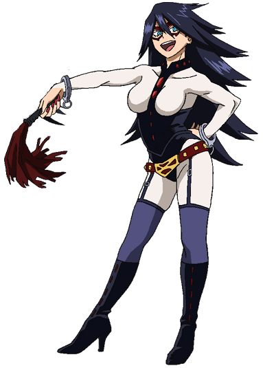 Seu traje de heroína era muito semelhante ao de uma dominatrix tradicional . Ela usava um collant de couro preto sem seios - semelhante em estilo a um espartilho - sobre um macacão branco apertado e fino (da cor da pele no mangá), o que acentuava sua figura voluptuosa. A faixa central de seu collant era embelezada com acessórios semelhantes a pedras preciosas vermelhas em um padrão vertical, estendendo-se do colarinho até o diafragma. Ela também usava meias-liga pretas translúcidas na altura da coxa, presas a um cinto de utilidades cor de vinho decorado com tachas de ouro em volta dos quadris, uma fivela pentagonal combinando no centro e botas pretas até os joelhos. Ela tinha uma pequena máscara vermelha delineando seus olhos e uma algema em cada pulso. Ela costumava ser vista carregando um chicote do tipo chicote. O body branco era feito de um material fino que é facilmente rasgável para que ela pudesse usar seu Quirk com mais facilidade . Nemuri havia declarado em uma entrevista que ela estava testando diferentes materiais para descobrir o que funcionava ao mesmo tempo em que obedecia aos regulamentos do figurino.