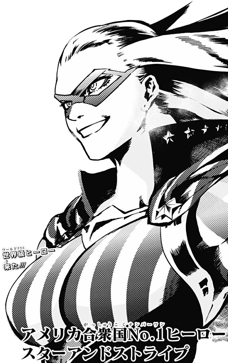 Она глубоко восхищается Всемогущим, за то, что он спас её и её семью много лет назад, когда учился за границей. Она считает его два пучка волос символом героизма, и её собственные волосы были уложены аналогичным образом с восемью пучками, чтобы символизировать её стремление быть героем. Звезда и Полоса также восхищаются его невероятной силой, до такой степени, что она всегда усиливает себя, используя свою причуду.