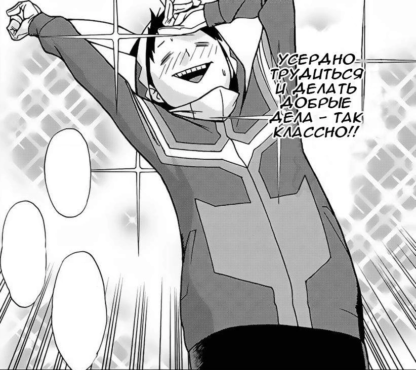 Пока он находится в какой-то маскировке или находится в более или менее пустынном районе, он не видит никаких проблем в использовании своей причуды на публике, даже если он не является профессиональным героем . Он использует свою причуду, чтобы делать добрые дела для публики, например, собирать мусор, возвращать утерянные вещи, давать указания, помогать людям садиться в поезда, быть оператором и утилизировать. У него очень героическая натура, и он не может игнорировать людей, нуждающихся в помощи.