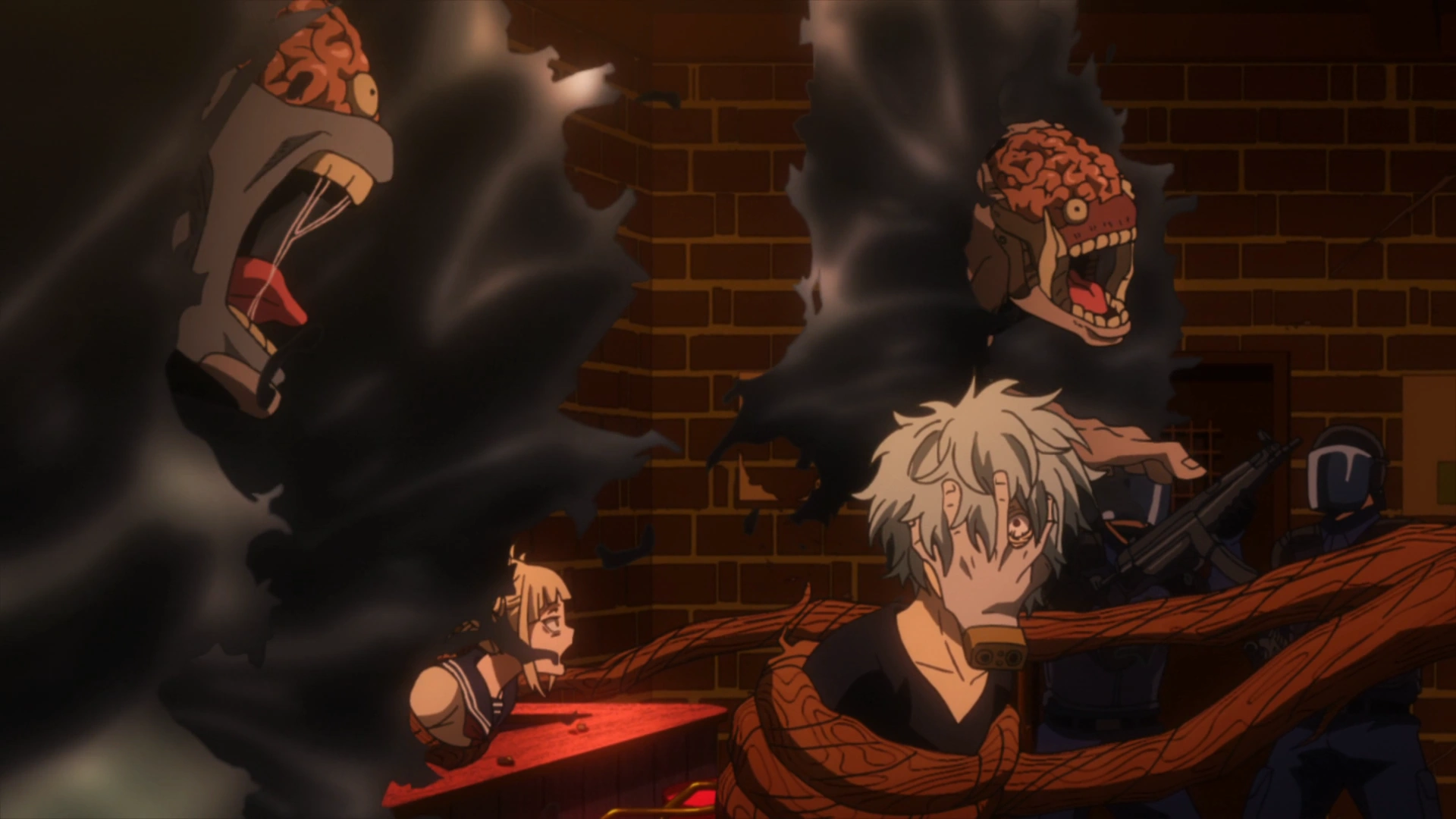 Лабораторию обыскивает Команда Налёта на убежище и всех тринадцать ному, включая ному-бензопилу, задерживают. [8] Неожиданно появляется Все За Одного и нападает на героев. Он переносит ному в другое убежище, чтобы спасти Томуру и других злодеев от задержания героев.