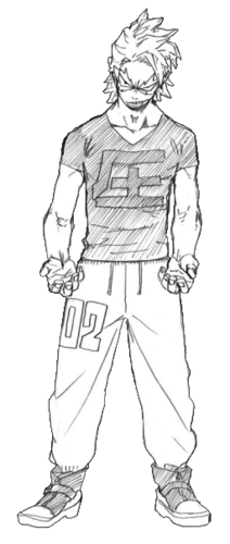 Тецутецу — подросток с серебристыми волосами, густыми белыми ресницами и острыми, как и у Эйджиро Киришимы, зубами.