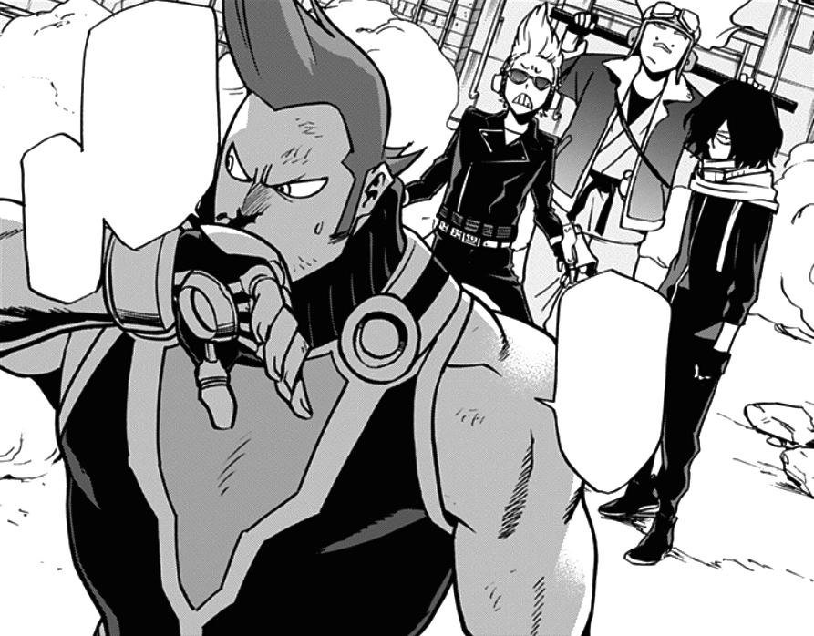 Возвращаясь к агентству Пурпурной Революции, Шота размышлял над словами Его Пурпурного Высочества. Это был хороший совет, но для него невозможно улыбнуться, если он допускает ошибки, на что Оборо успокоил его и сказал чтобы Шота продолжал улыбаться, даже если он допускает глупые ошибки. Затем, когда они говорили о том, что он будет делать против Злодея, если он снова встретится с ним, Оборо решил одолжить Шоте свои очки, чтобы защитить его глаза от дыма злодея.