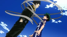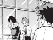 Опечаленный, узнав правду, и со слезами на глазах, Шота кричит Курогири, что, если Оборо все еще там, трое из них все еще могут быть героями вместе.