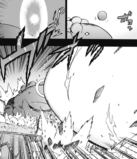 Shota quickly develops new stratagems to deal with Garvey and prevents him from causing more destruction, by forcing him to attack upward, into the sky. The villain detaches three bumps, and unable to cancel the Quirk, Shota places himself on Garvey and dodges the three beams he releases. Then, the villain detaches another lump, and this time Shota has the opportunity to use his Quirk, He quickly jumps towards it and kicks the non-activated lump straight up so it detonate at safe height. However, the villain strikes back, taking advantage of the fact that he is still in the air after his last action to smack him down violently.