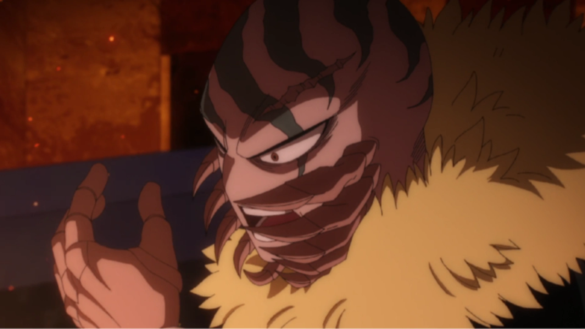The PLF adviser loudly praises Spinner's acts, assuring his followers that the blood they spill today will benefit their future. Anima can't believe what he was hearing, angered by Takaie words. He remembers the day that Mezo showed his face to his classmates and talked about his past and the origin of his scars, and that despite everything he suffered, he is determined to become the most extraordinary Hero that will inspire future generations to banish decades of prejudices. These memories of his friend's determination make Anima's horn begin to change.