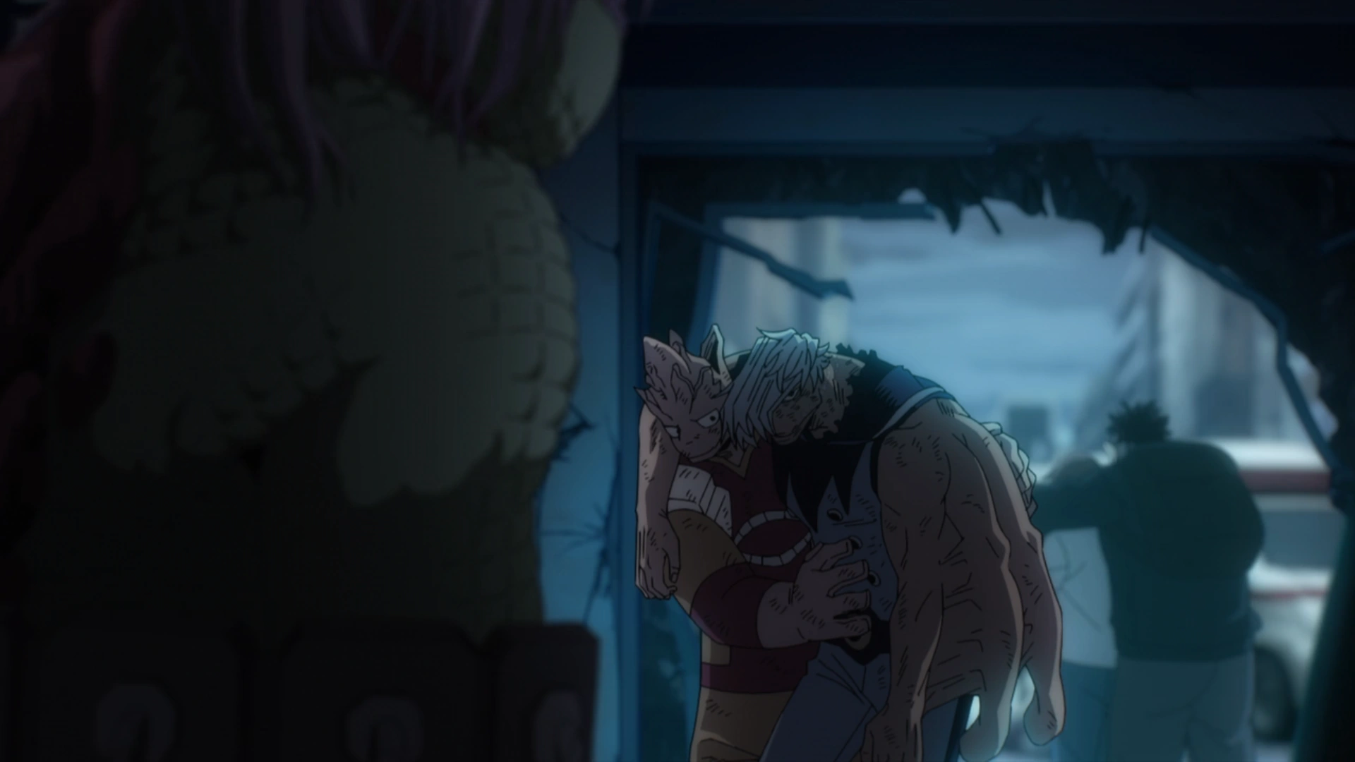 As the riot ends and the Counter-Force gets an update on the other battles, Spinner is fully apprehended and taken away as Tentacole & Anima continue helping clear out the battlefield and help the wounded.[11] After being warped away from U.A., Shota & Mic able to bring a bit of Obora out of Kurogiri and use his help to warp other Heroes to Deku's side, including bringing over Tentacole & Anima from Central Hospital among several others.[12]