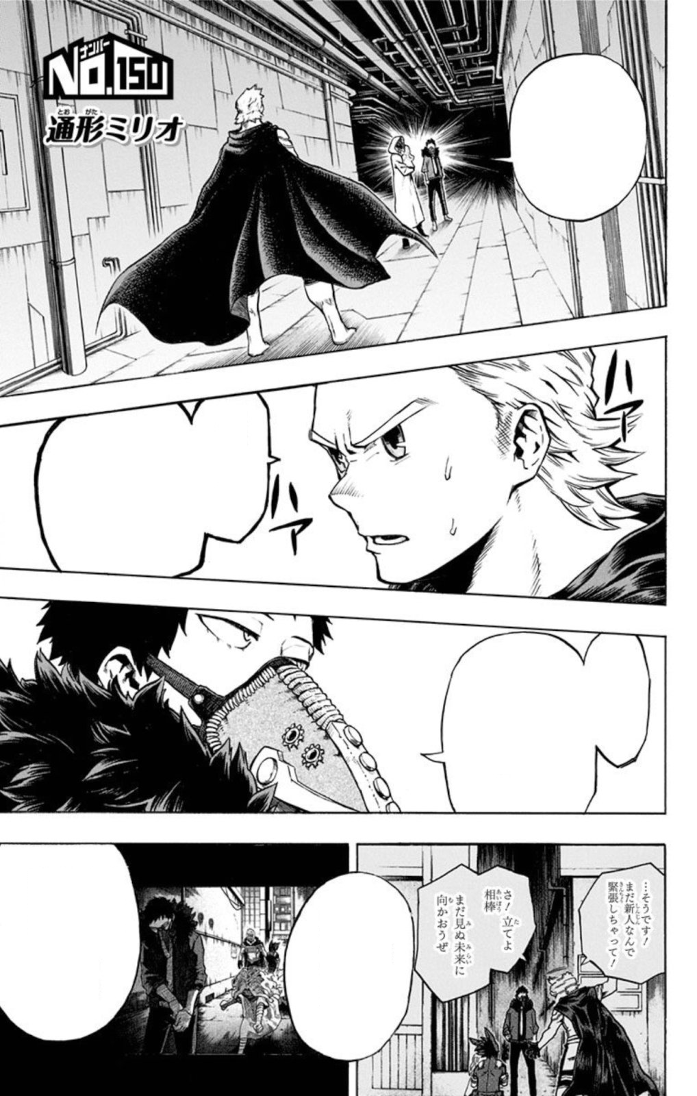 Shin questions Mirio's motives for saving Eri, wondering if he only wants to save her to make himself feel better. Mirio has stopped in his tracks. Seeing that Overhaul is leaving, Shin decides to finish off Mirio so that he can quickly rejoin Overhaul. Shin fires his bullets and Deidoro throws his knives at Mirio. Suddenly, Mirio uses Phantom Menace, a move in which he phases himself and quickly strikes down his opponents, knocking down both Shin and Deidoro.