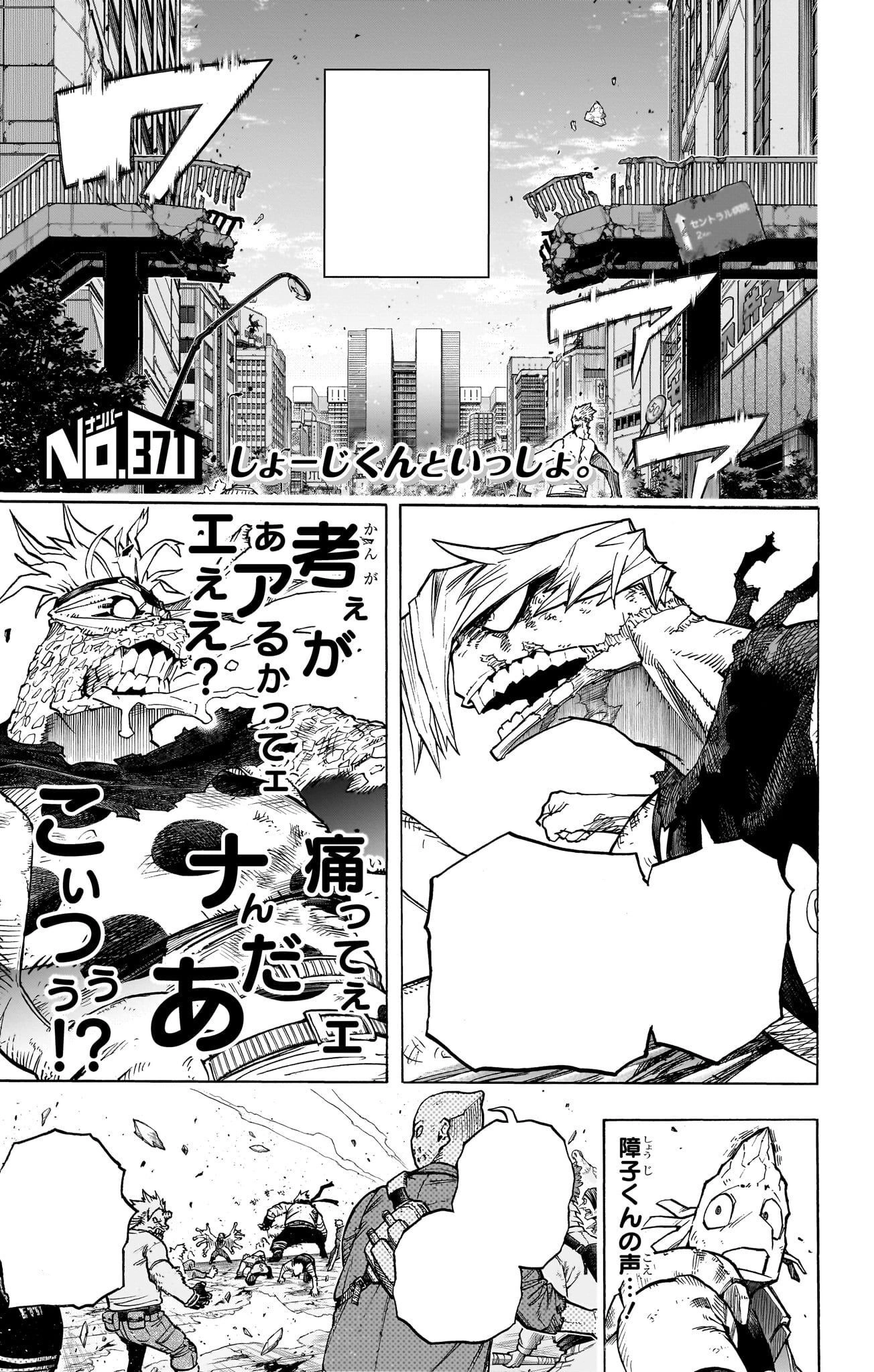 Together with Shoji (しょーじくんといっしょ。 Shōji-kun to Issho.?) is the three hundred and seventy-first chapter of Kohei Horikoshi's My Hero Academia.