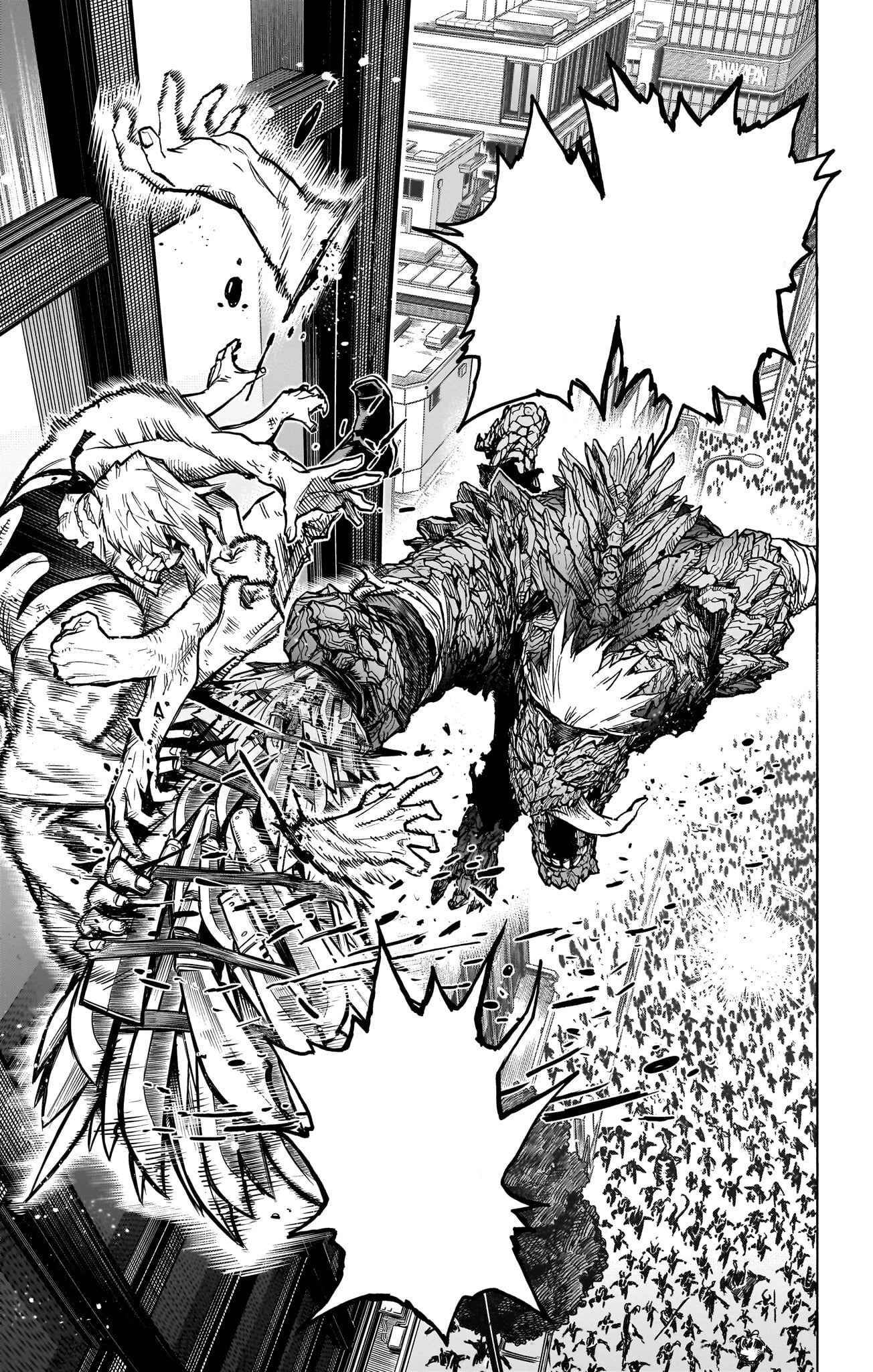 Anima calls out to Tentacole after he's tossed through a building, while the Liberation soldier continues to command the heteromorphs to strike back at their oppressors and that the blood spilled today will benefit their future, which angers Anima. He recalls back to sometime during their days at U.A., when Mezo showed them his arms, mouth, and scars. He says that his parents didn't have arms like his, and that he lived in a terrible town that came out in force for a "blood cleansing" anytime he would come into contact with someone else.