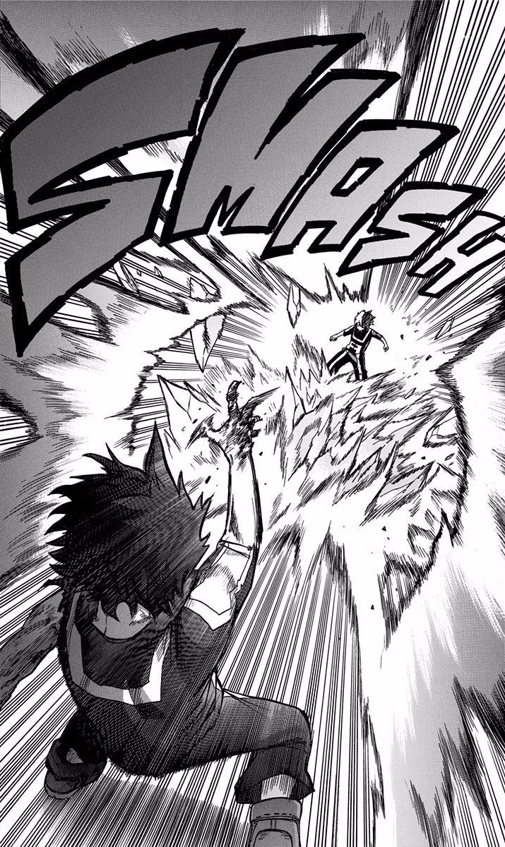 Shoto starts to attack the defenseless Izuku, but Izuku creates another wind pressure attack and frees himself while knocking Shoto back. After seeing Izuku's broken fingers, Shoto notes that Izuku is in a critical position and decides to end the battle by launching another wave of ice. Shockingly, however, Izuku fires another wind pressure attack, destroying the ice. Izuku criticizes Shoto for only using half his power while aiming for the top and says that Shoto hasn't even managed to injure him yet. Izuku clenches his broken right hand into a fist and yells at Shoto to fight him man to man. Angry, Shoto wonders what Izuku is planning.