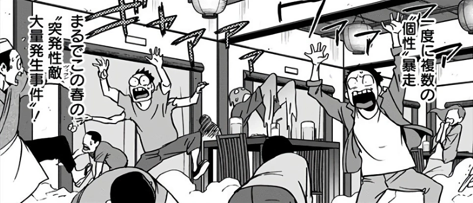 Meanwhile, in the Hotta Brothers Shop, Naomasa informs Eraser Head of the existence of another type of Trigger, connected to the instant villains who attended the Mixers. This new variant only needs to be ingested to work, so the Police Force suspect the drug is mixed into the drinks, and the victims are getting roofied.