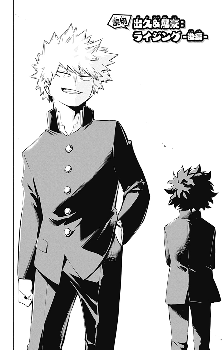 Before leaving, Izuku understands that Katsuki had been able to deduce the true nature of the villain. Despite his unpleasant personality, Izuku acknowledges that being one of the reasons that makes Katsuki incredible. For his part, Katsuki realizes that Izuku had been looking for the villain on the ground from the beginning, which means that he had been able to deduce the real nature of the Villain's Quirk before him. This thought makes him furious as he generates further animosity towards Izuku.
