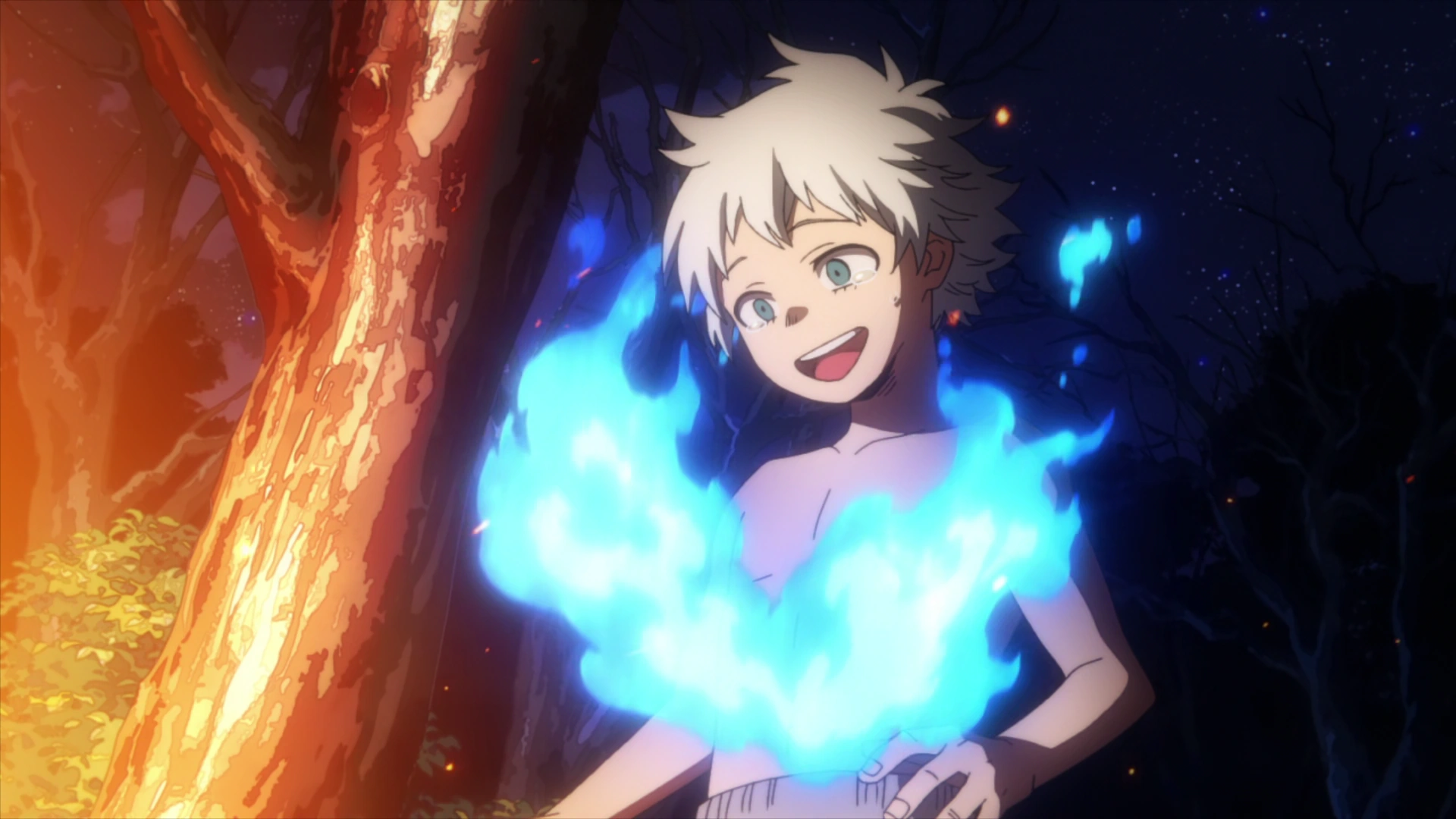 Toya continued to train at Sekoto Peak, and during the winter season, around the time he had a growth spurt, his Quirk developed, and his flames' color changed from red to blue. Toya discovered that his flames are linked to his emotional state and would get stronger if he was riled up. He started crying while saying he doesn't know why he does when he gets worked up.
