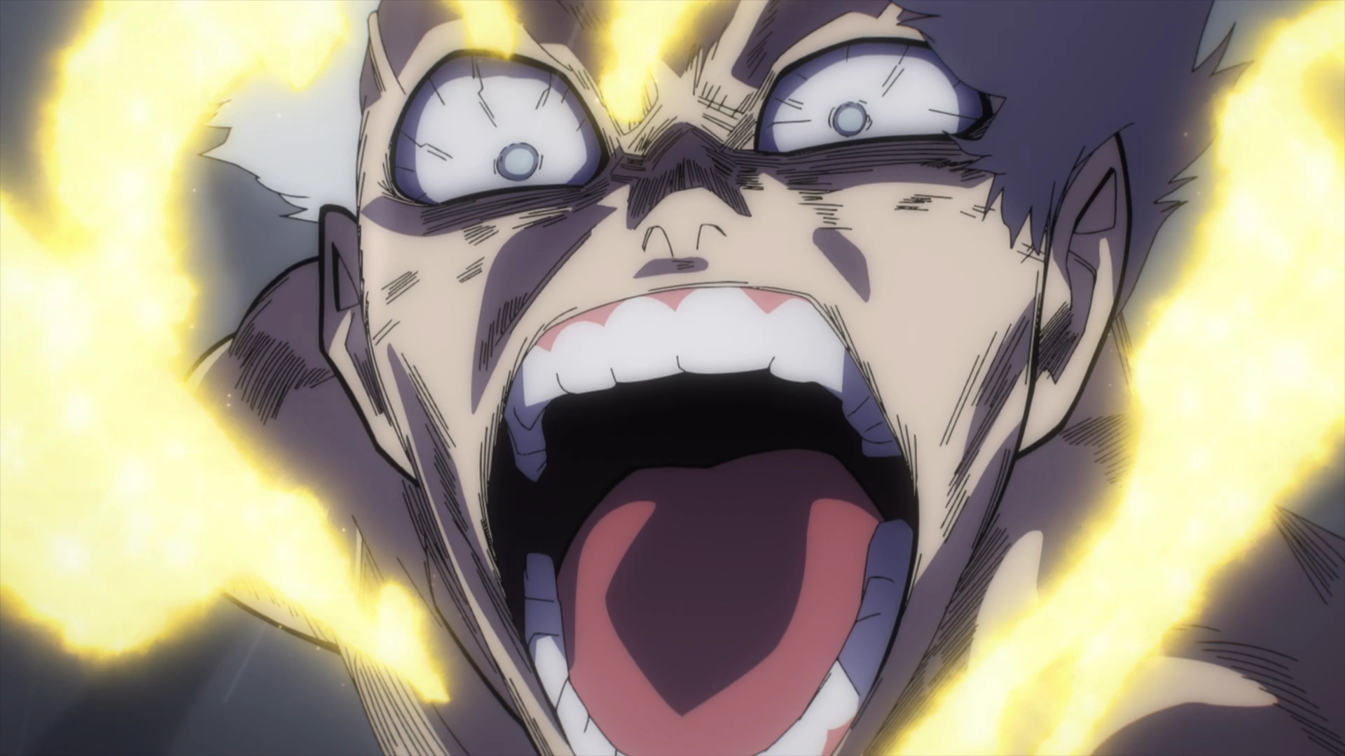 The Villain doesn't get too far, as Dynamight immediately blasts forward and catches up to him, declaring that he's the final boss of this fight before gripping All For One's head and blasting him down to the streets with a supercharged explosion. As the Villain starts getting flashbacks to his final moments with the Second User, much like "Tomura" did with his own fight with Dynamight, the boy screams out that he's here to finish the job that One For All started. All Might marvels at the boy's enhanced speed due to his Quirk awakening, as Edgeshot fills him in on the details and says that the student was coming to some sort of realization as it happened.