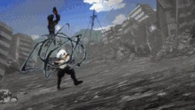 Katsuki using Explosion's brightness to subdue Fumikage and Dark Shadow.