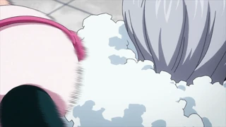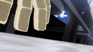 Just then, Momo uses her Creation Quirk to generate a cannon, shocking Itsuka. But Momo doesn't shoot at her but aims the cannon at the wall-like Katakana. Thinking that she wants to destroy the wall, Itsuka attacks Momo with a Double Jumbo Fist. Despite the powerful blow, Momo manages to shoot, but it turns out that her objective was not to destroy the wall but to launch something over. Before losing consciousness, Momo generates a rope to tether Itsuka to herself while she was still attached to the cannon.