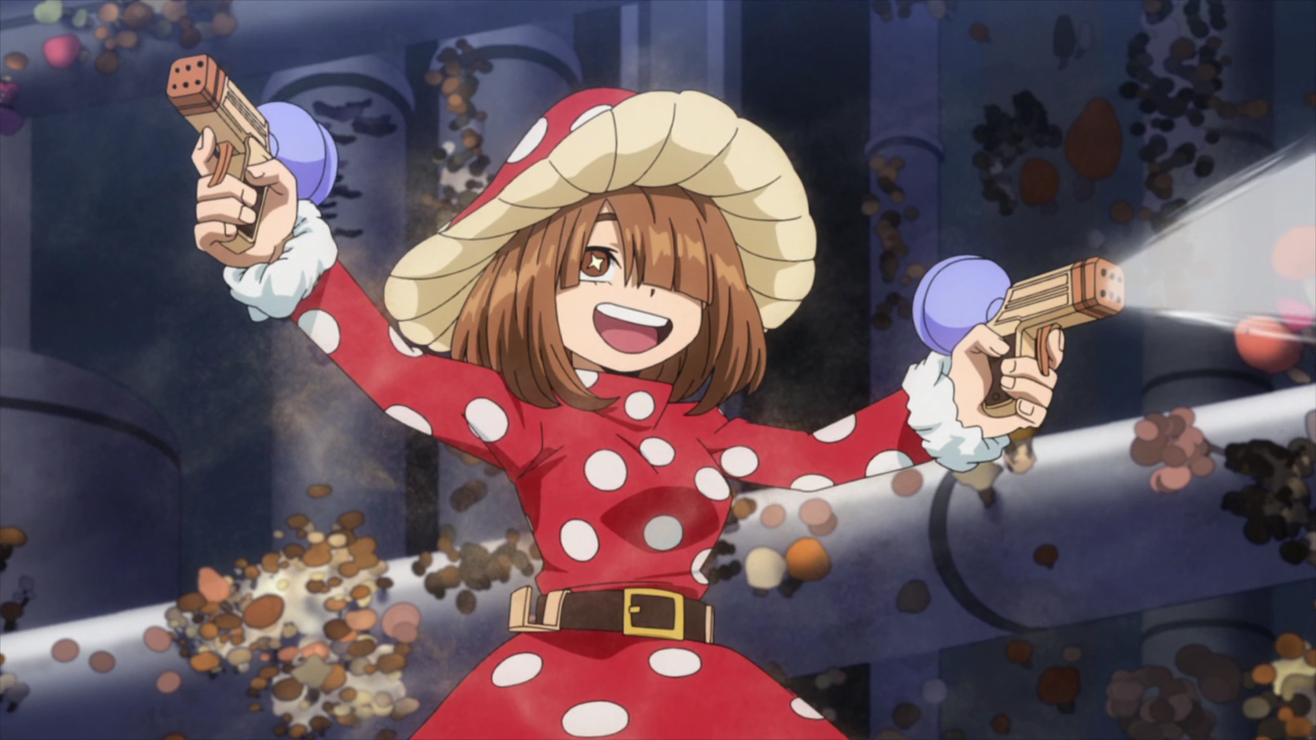 Kinoko humidifies an area with her mushrooms.