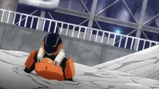 Tsuyu and Denki use pipes to frees Hitoshi from an air prison and commends Class 1-B on their strength. She adds that the team took too long adjusting to Hitoshi and got caught off guard. Hitoshi apologizes for his lack of battle readiness but Tsuyu replies she should've come up with a better plan to keep him off the front lines, and Denki him because his quick action prevented everyone from being eliminated in the first skirmish. Tsuyu comes up with the idea and tells Denki to use his Sharpshooting Gear to locate Jurota.
