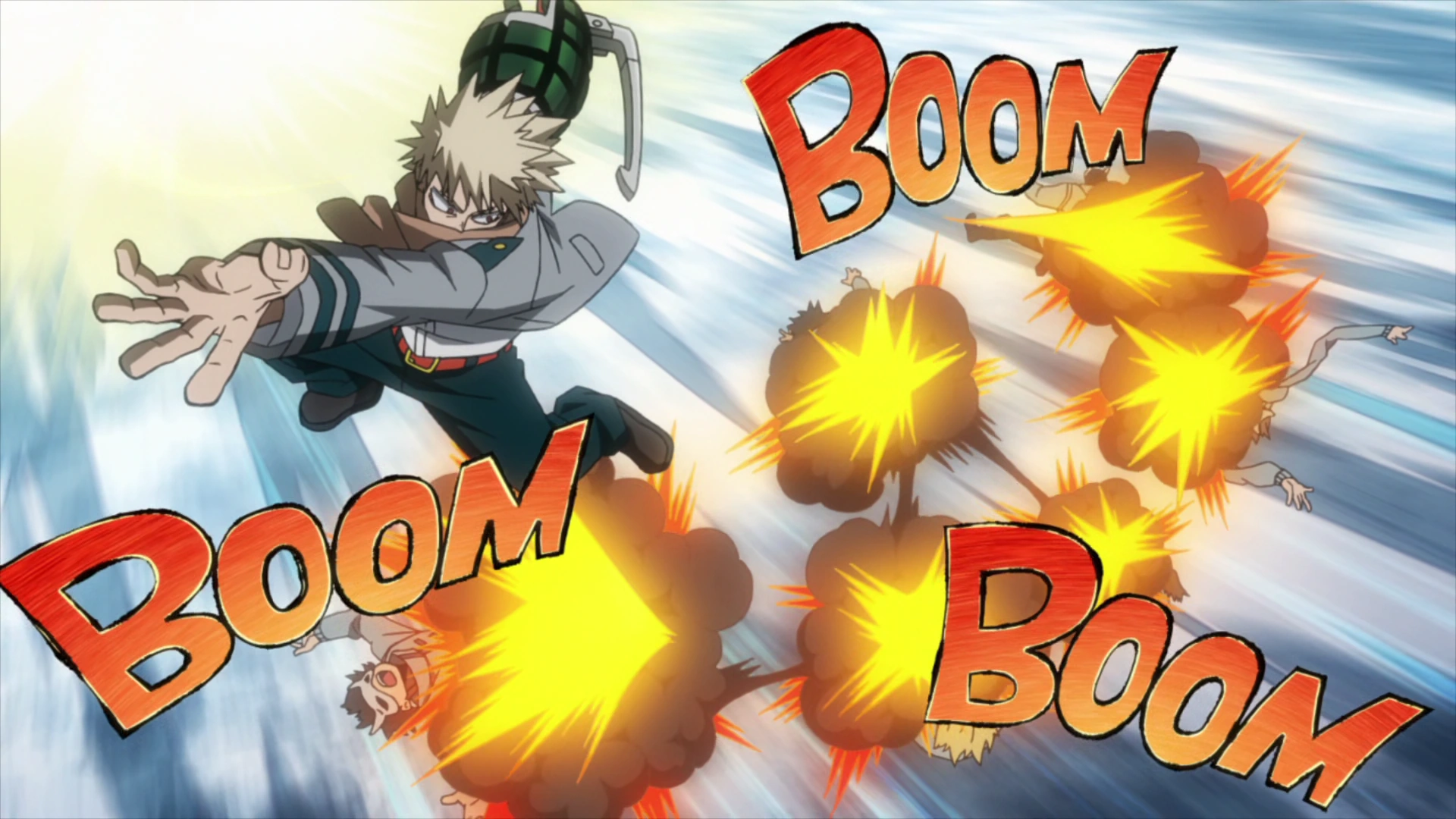 The Cider House's leader reveals his group worked for a whole month planning this crime and says they're determined. The thieves abruptly turn tail, determined to escape with their riches. Katsuki propels himself into their path and then explodes them all at once, knocking most of the villains out cold. The explosive U.A. student claims the villains are only determined to get hurt and launches himself at their leader.