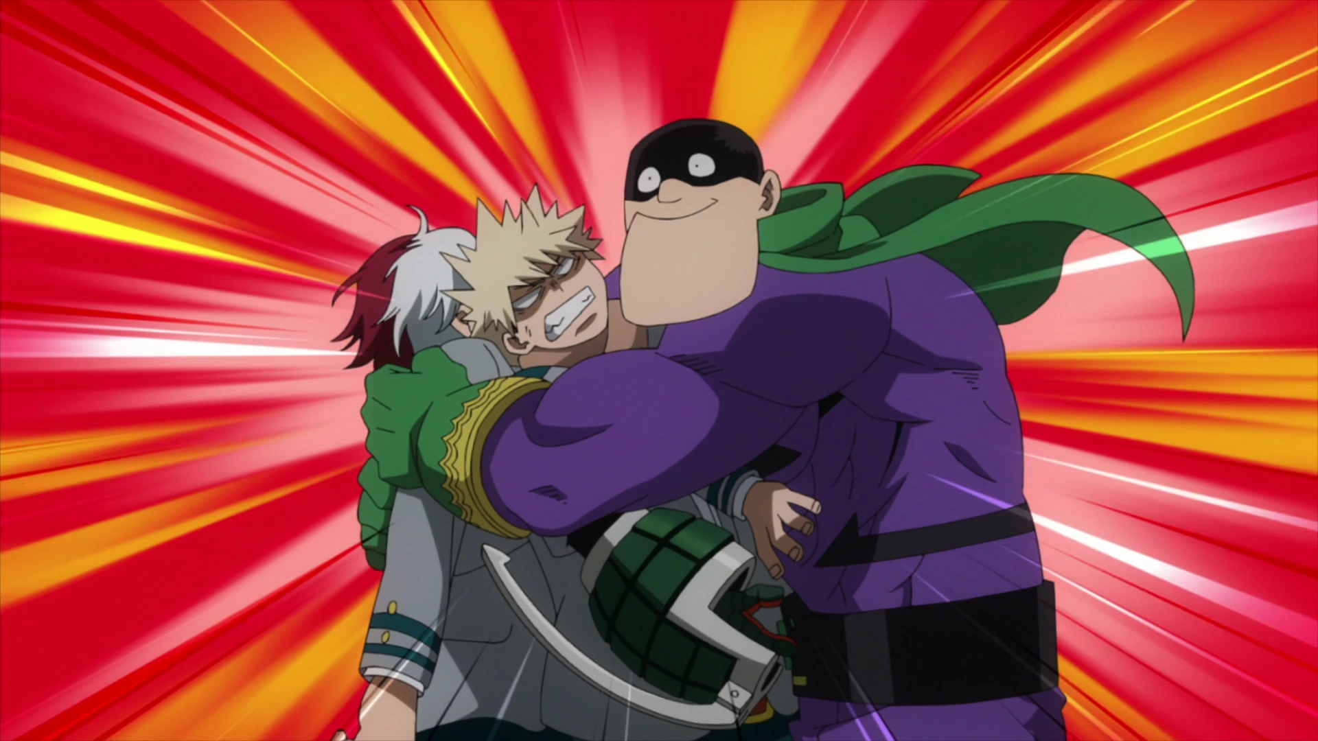 Following Katsuki and Shoto's first battle since getting their licenses, All Might brings the Hero Slidin' Go to deal with the rest. Slidin' Go is impressed by the boys' good work. Katsuki even managed to take back the stolen goods before he exploded the villains. Slidin' Go commends the boys with a hug and claims they'll be top Pro Heroes for sure.