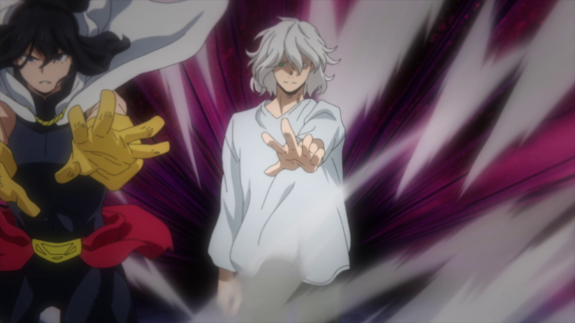 Due to the relationship between One For All and All For One, Izuku is given the primary role in directly dealing with Tomura and All For One's vestige, having trained and mastered the Quirk enough to unlock all the Quirks of the users and use their power to achieve an equivalent of 120% of One For All's power. It has become so powerful it helped disrupt All For One's forceful merger with Tomura, giving him the opportunity to strike back at his master and attain full use of the All For One Quirk itself. Proclaiming he has no need for One For All, Tomura's goals fully diverge from his master as he proceeds to face down Izuku to destroy him and his Quirk for good, aiming to remove the one person capable of halting his quest for global annihilation.