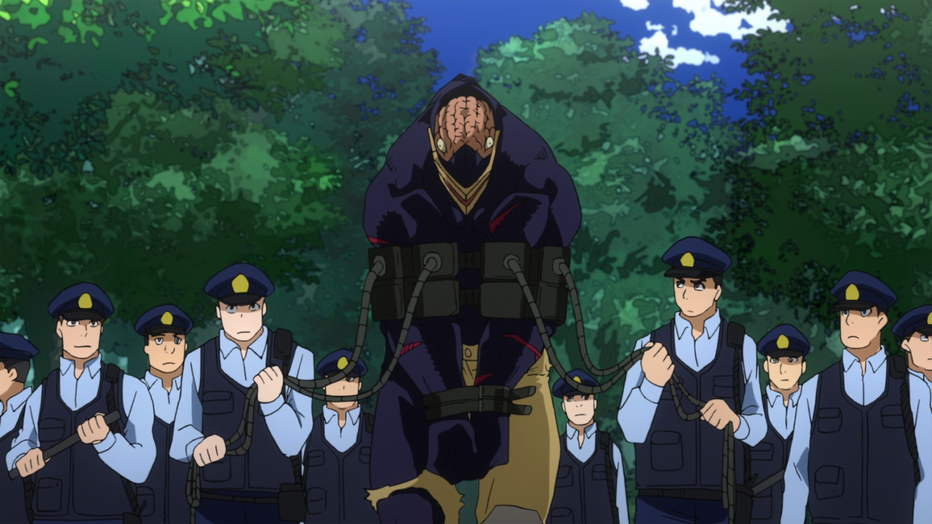 The Police Force carry standard equipment used for detaining and arresting Villains, including firearms, handcuffs, armored police vehicles, etc. Likewise, they also have access to the government's Quirk registry, allowing them to identify suspects based on their Quirks. However, they also use advanced equipment as a means of containing and transporting Villains due to the danger their Quirks can pose.
