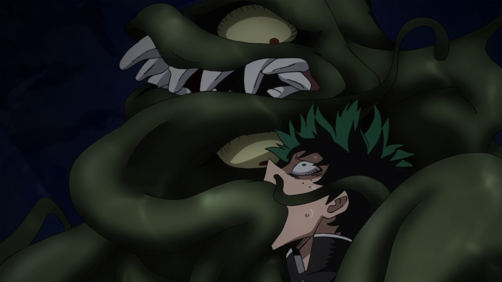 The Sludge Villain's Quirk being used to seize Izuku's body.