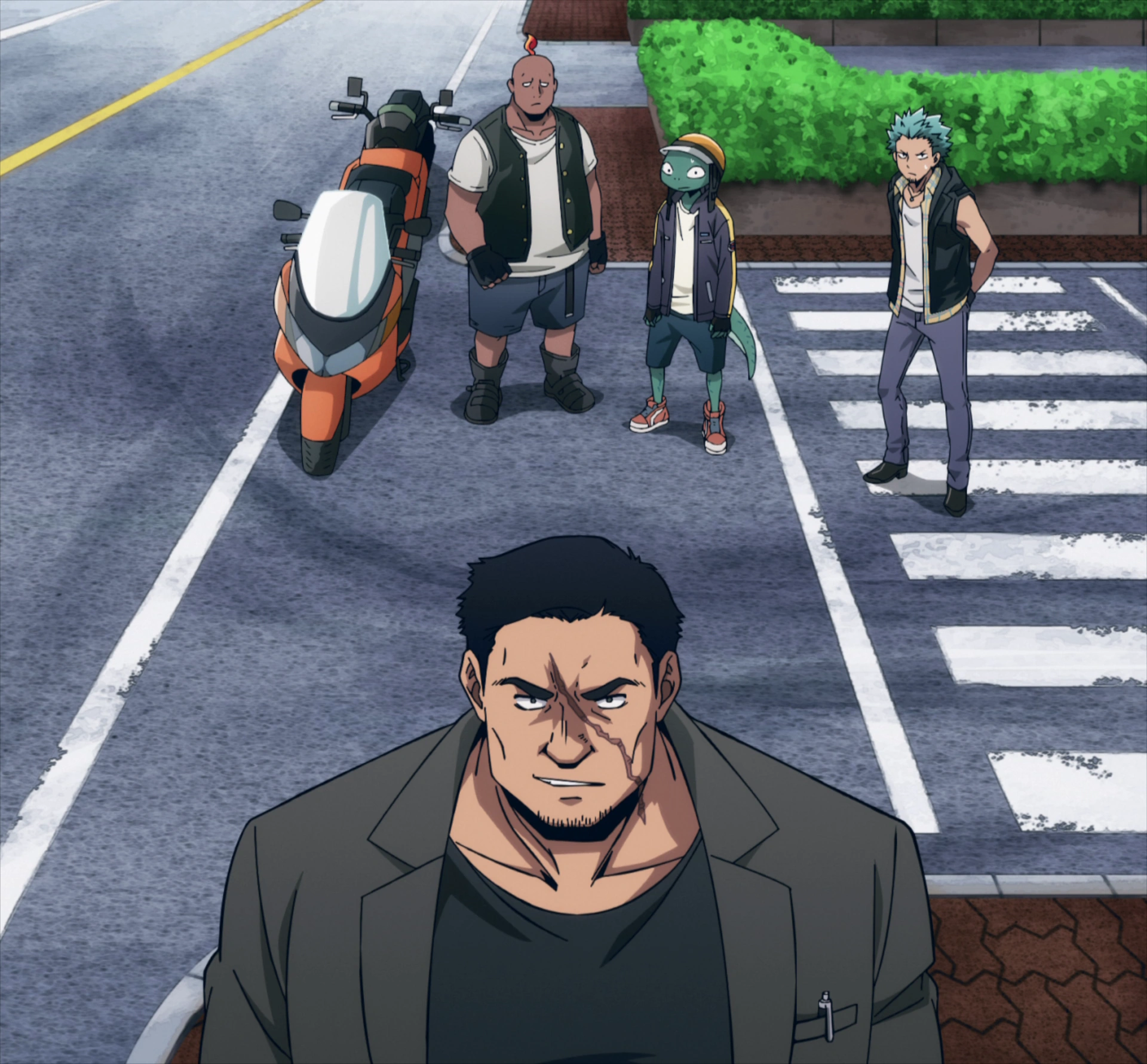 When the bees are about to attack him, a stream of flames coming out of nowhere incinerates most of them. Soga turns to see Moyuru Tochi, who had used his Ignition Quirk, and Rapt Tokage on motorcycles. Rapt tosses his a helmet and tells Soga to hop on quickly on his bike to run away, something that Soga does without hesitation.