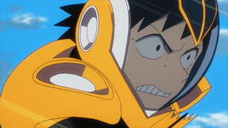 Hanta's elbows look and function like tape dispensers, from where he can fire lengths of tape that stick to anything he aims at. The amount of tape Hanta is able to generate in a single instance isn't unlimited, but it's still plentiful enough for him to successfully utilize for various offensive, defensive and movement purposes, making his Quirk surprisingly versatile.