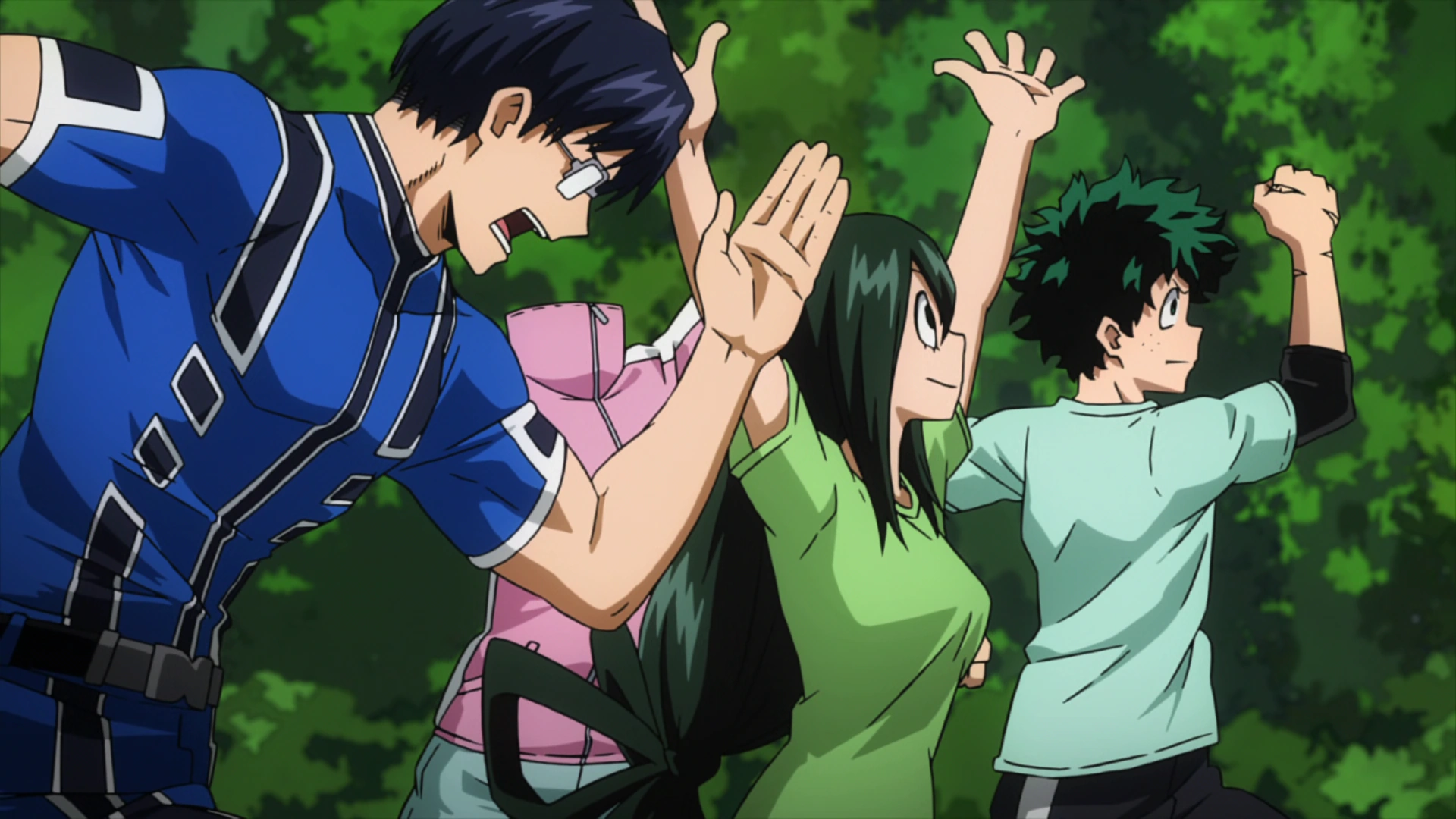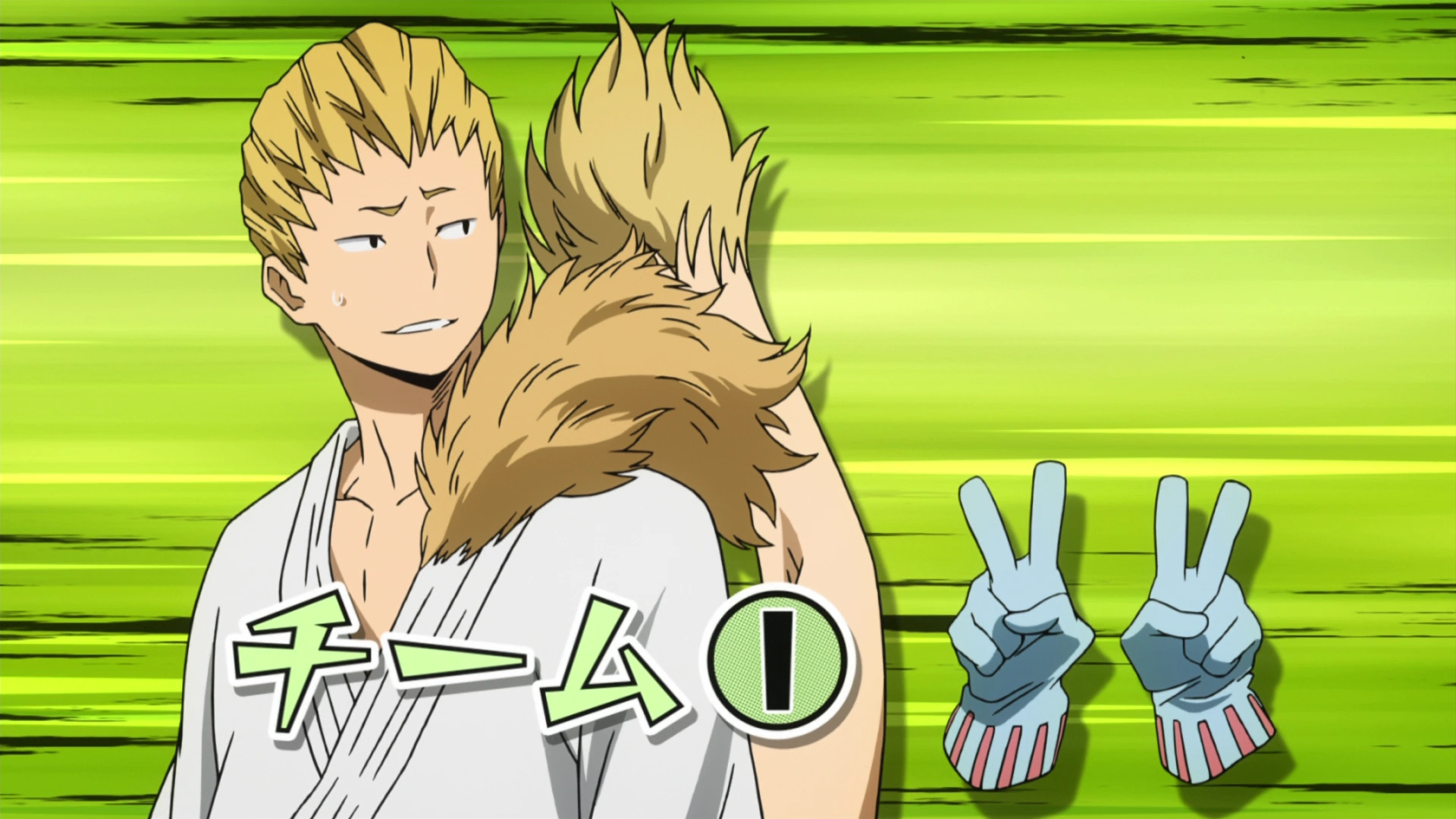 That day, they are informed that the new destination will be a mountainous region, owned by the professional Hero Team, the Wild, Wild Pussycats, where they will undergo reinforcement training to strengthen and upgrade their Quirks which will also allow Class 1-A to obtain their temporary licenses.[24] Toru trains together with Mezo to increase the strength of both their Quirk by having Mezo quickly create multiple Dupli-Arms to look for Toru while she uses her invisibility to further hide her presence.[25]