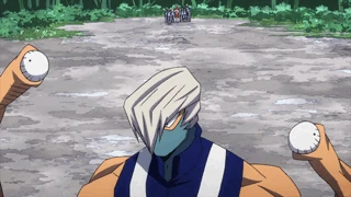 When the first trial begins, all the opposing students are thrown against the students of the U.A., who find themselves having to defend themselves against a large number of attacks; Kyoka deflects balls coming from the subsoil with her new special move Heartbeat Distortion. However, a boy from Ketsubutsu uses his Quirk to divide the U.A. students.[33]