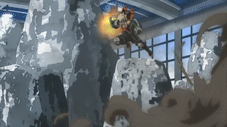By the fifth day, Fumikage is able to cover Dark Shadow over his body with a Ultimate Move called "Abyssal Black Body". Katsuki also develops a Ultimate Move called AP Shot where he concentrates his explosions into a beam. Katsuki destroys a large rock with it and the debris falls toward All Might, however, Izuku kicks the rock apart just in time with his new Ultimate Move: Full Cowl - Shoot Style.[2]