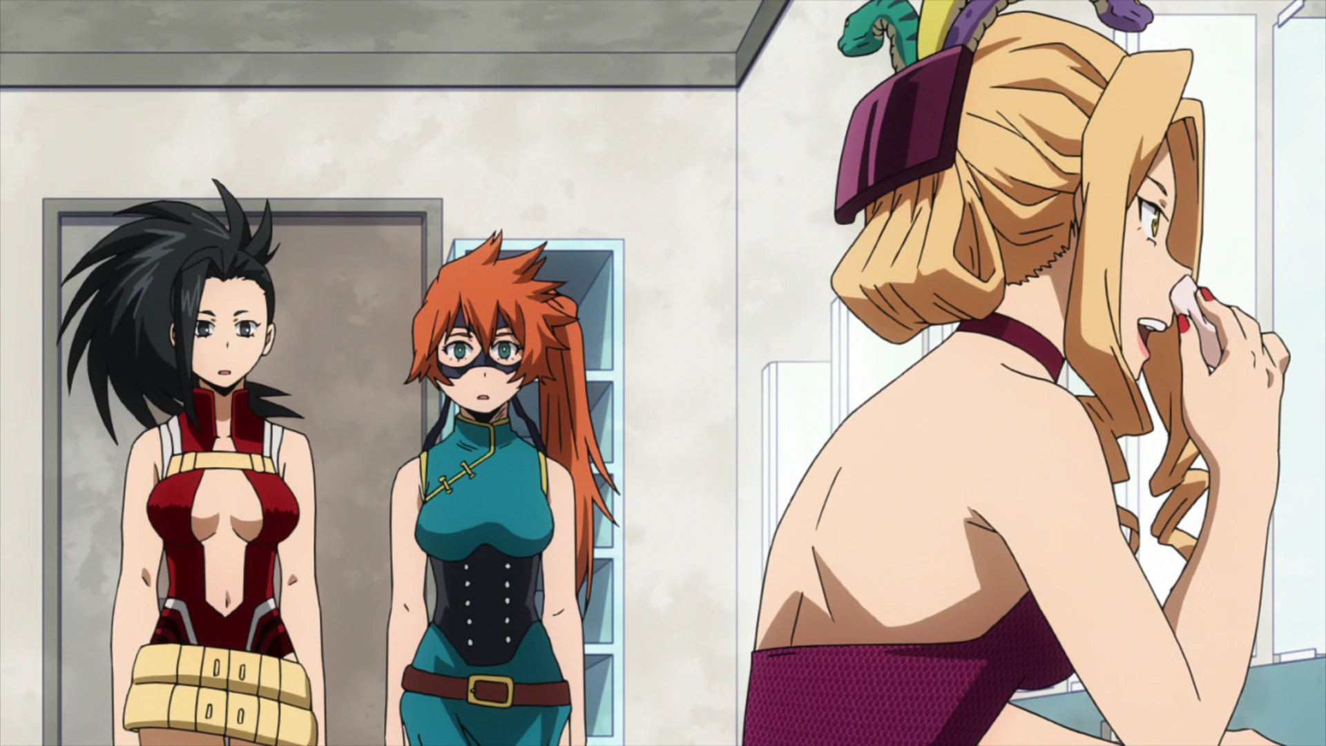 Momo and Ituska have both chosen Snake Hero Uwabami's workplace at which to get experience. Uwabami explains to the duo about her Hero office's work and how to earn popularity. Uwabami tells Momo and Itsuka that she has a commercial to film and tells the duo to get to know each other. Itsuka is somewhat disappointed about not getting the opportunity to experience Pro Heroes at work but Momo is optimistic about getting to study under the Snake Hero, causing Itsuka to comment on her upbeat attitude.
