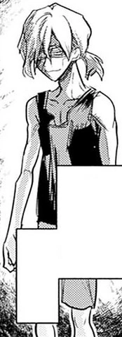 Yowashi is an adult man with shoulder-length light-colored hair and square glasses. During the training camp, he wore a black tank top and shorts.